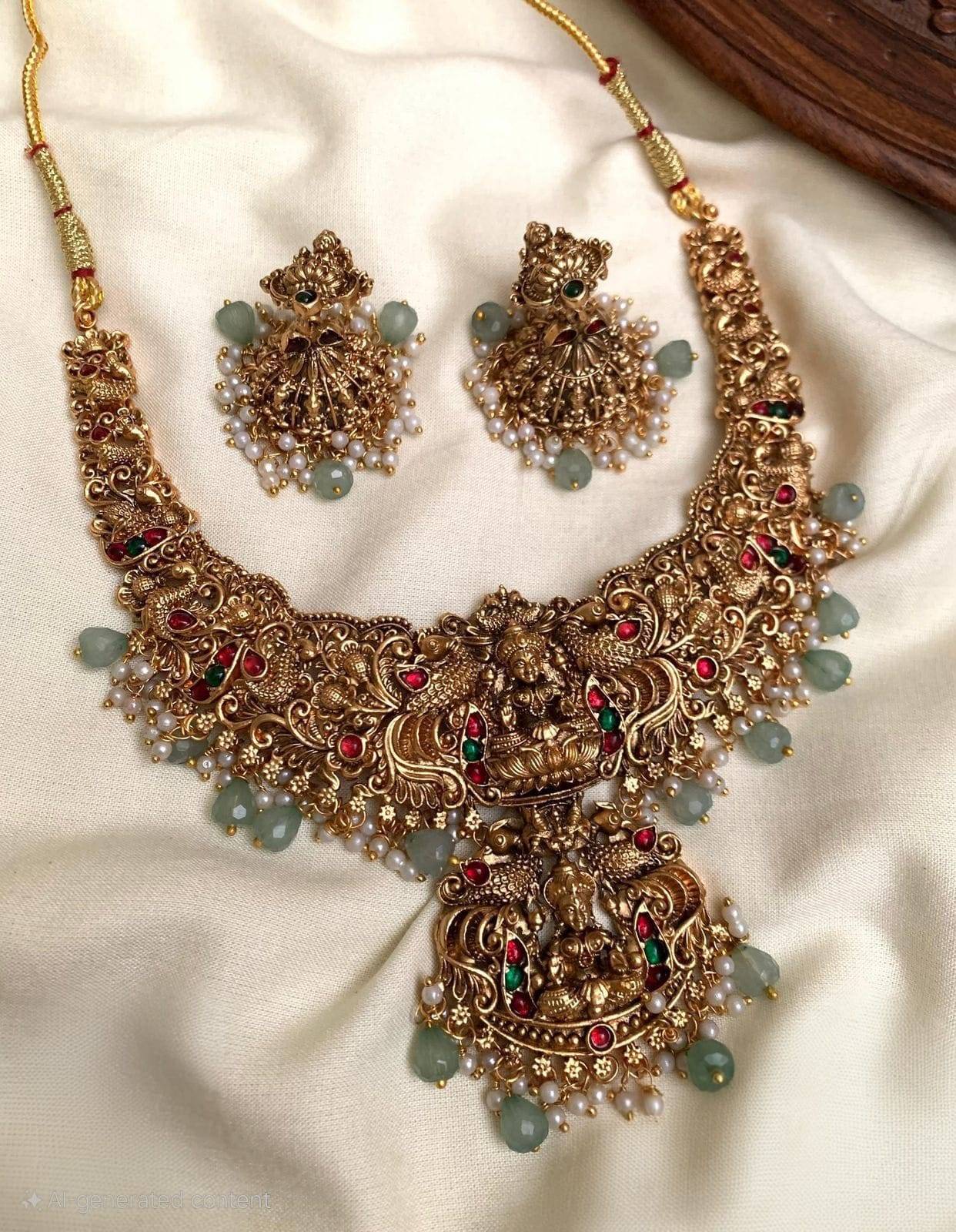 Perfect for weddings, festive occasions, and classical attire, this set embodies tradition, spirituality, and timeless grandeur.